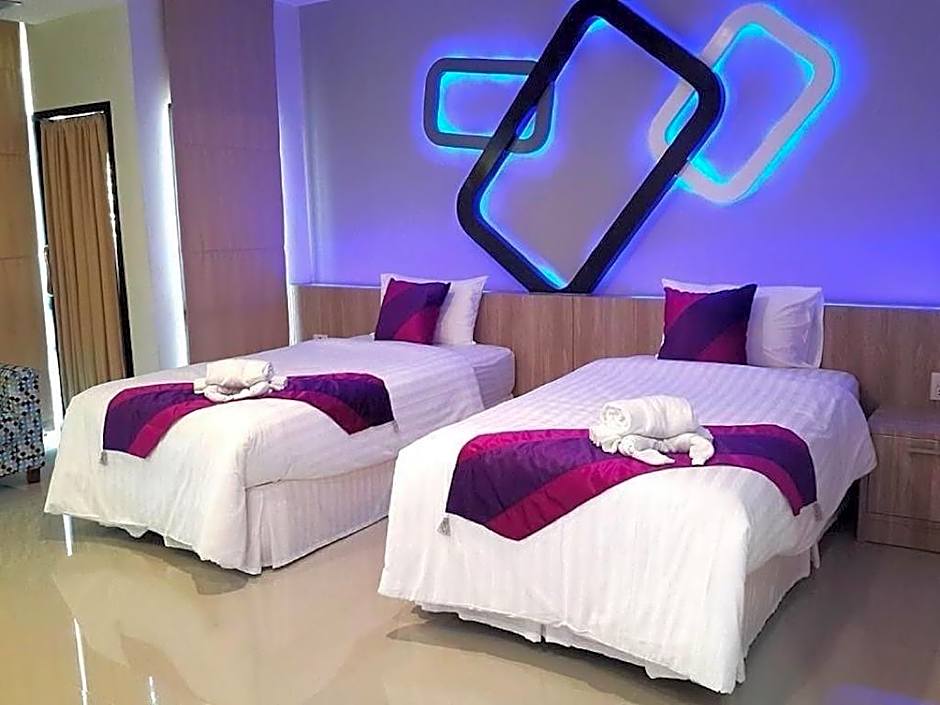 This twin room features a flat-screen satellite TV, a dining area and a sofa.